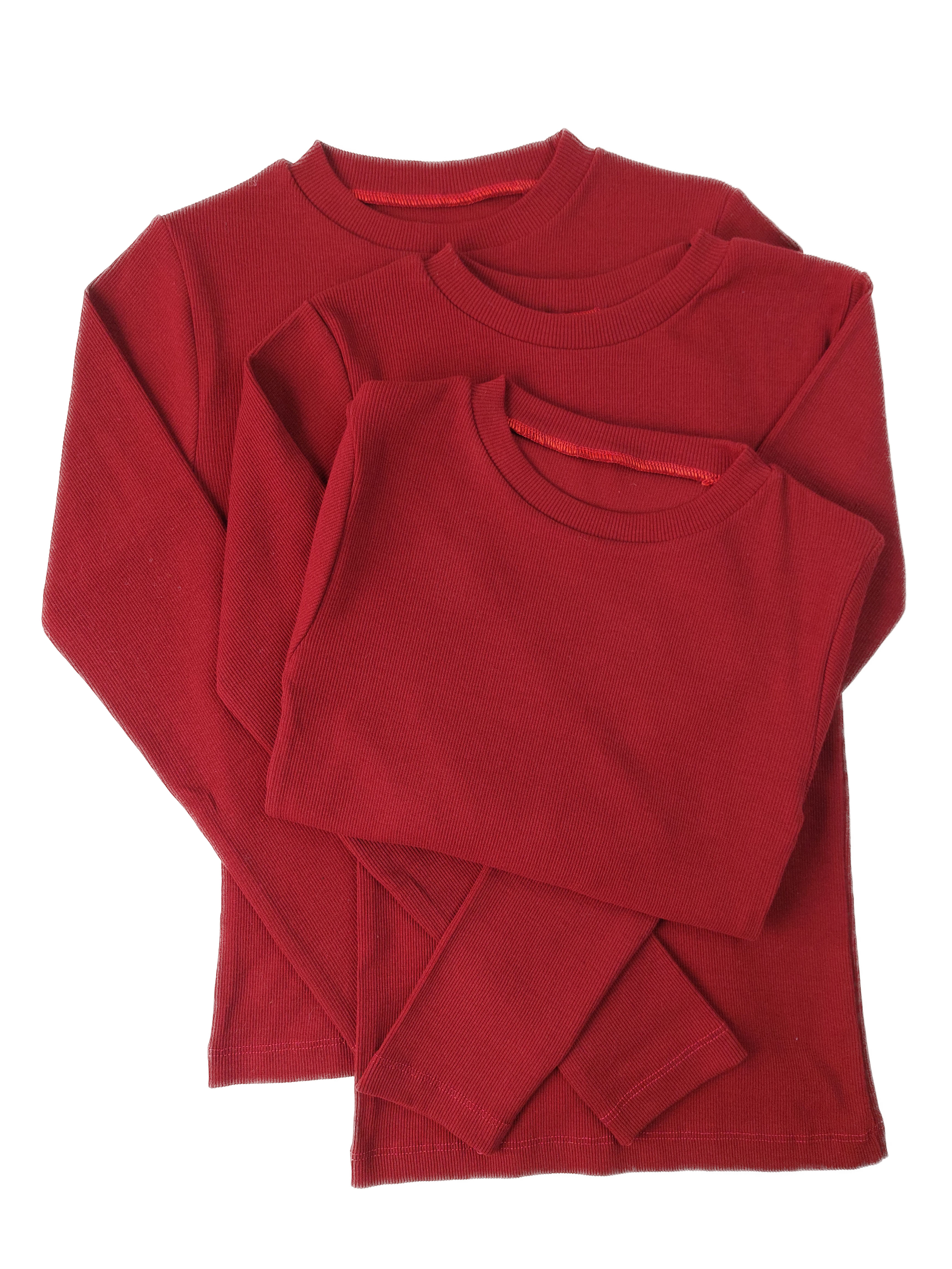 بلوز پنبه کبریتی یقه گرد قرمز اناری۳۶۹٬۰۰۰ تومان