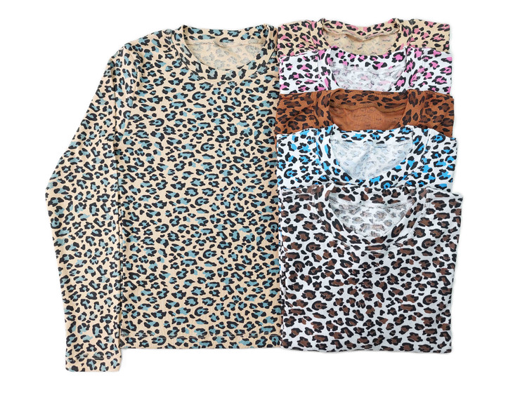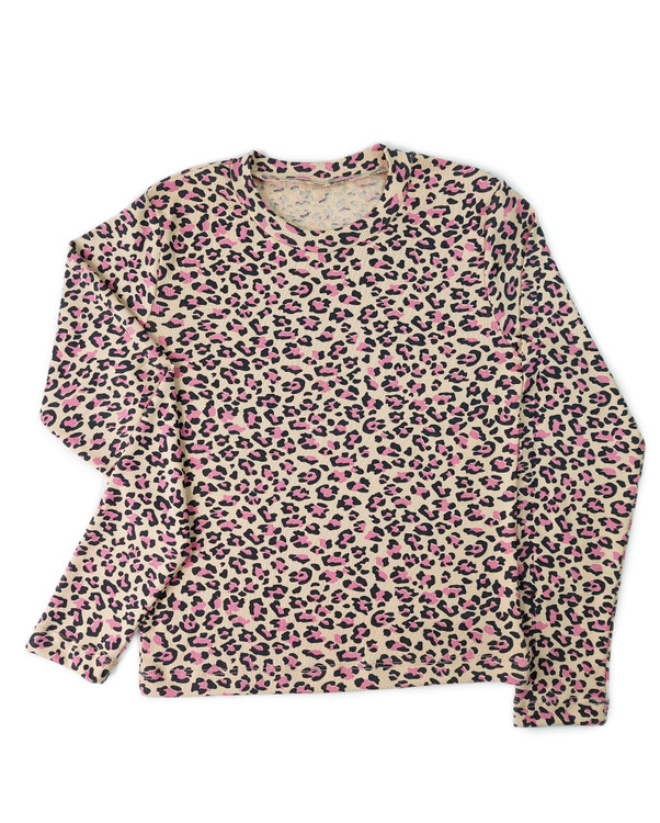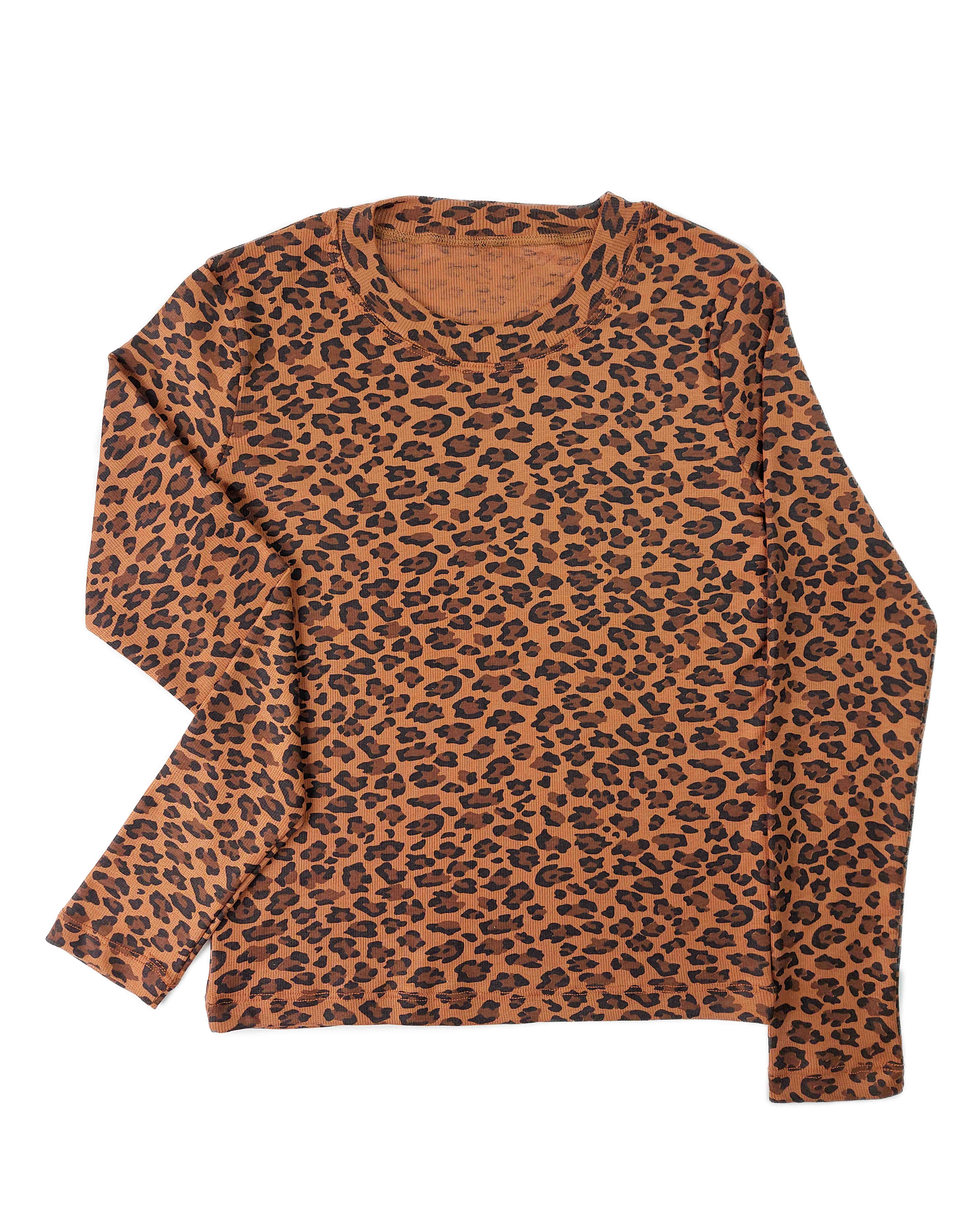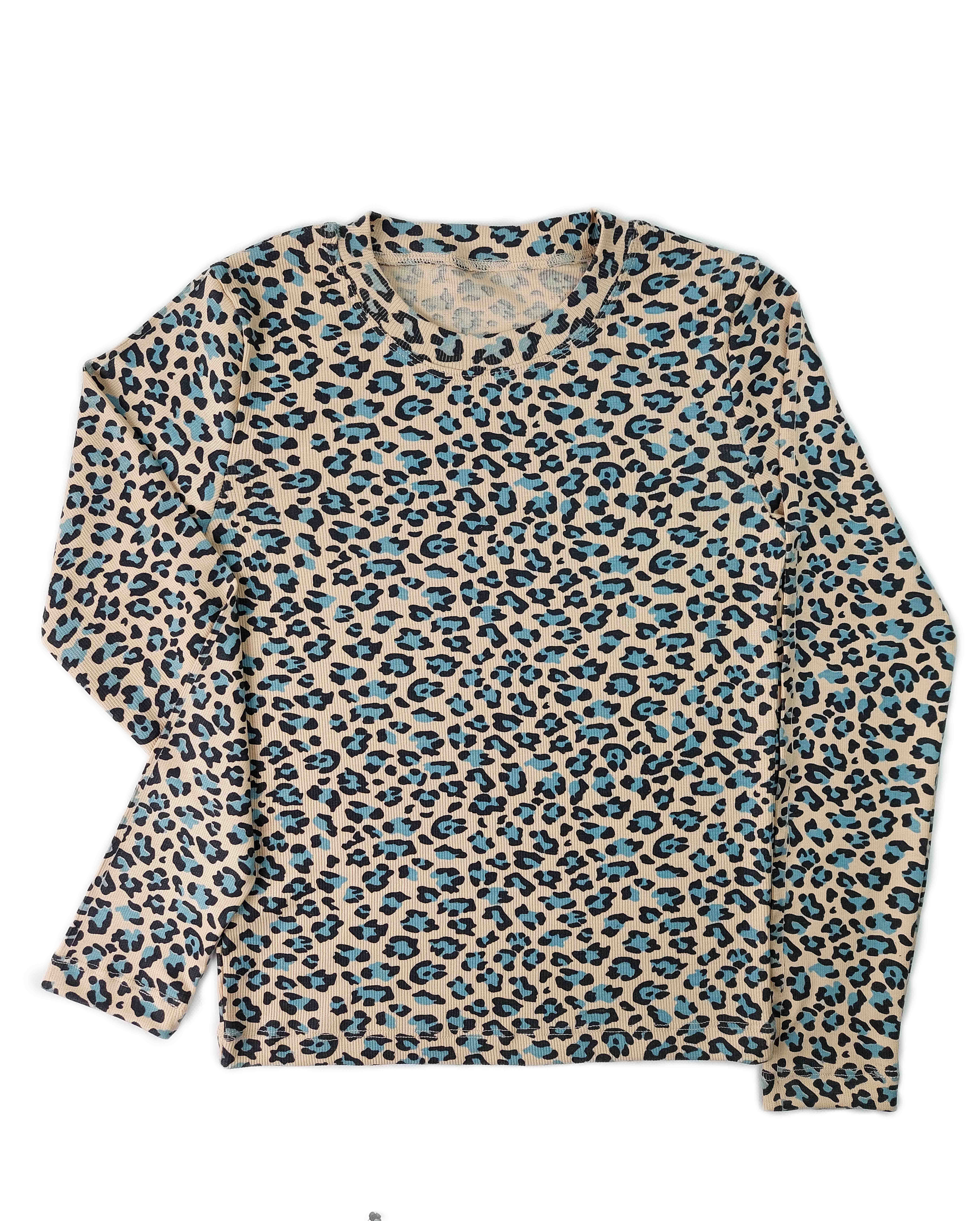 بلوز کبریتی زنانه طرح پلنگی یقه گرد